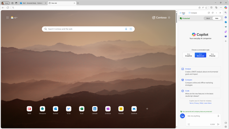 Cu un abonament pentru Copilot, îl puteți folosi direct cu alte aplicații Microsoft precum Word, Excel, Outlook, PowerPoint, OneNote și Teams(Copilot pentru Teams necesită subscripție pentru business). Companiile care instalează Microsoft 365 pot fundamenta răspunsurile Copilot cu propriile lor date. Cu alte cuvinte, poți întreba Copilot despre informații specifice care ar putea fi găsite în documentele tale Word, e-mailurile Outlook sau conversațiile din Microsoft Teams.