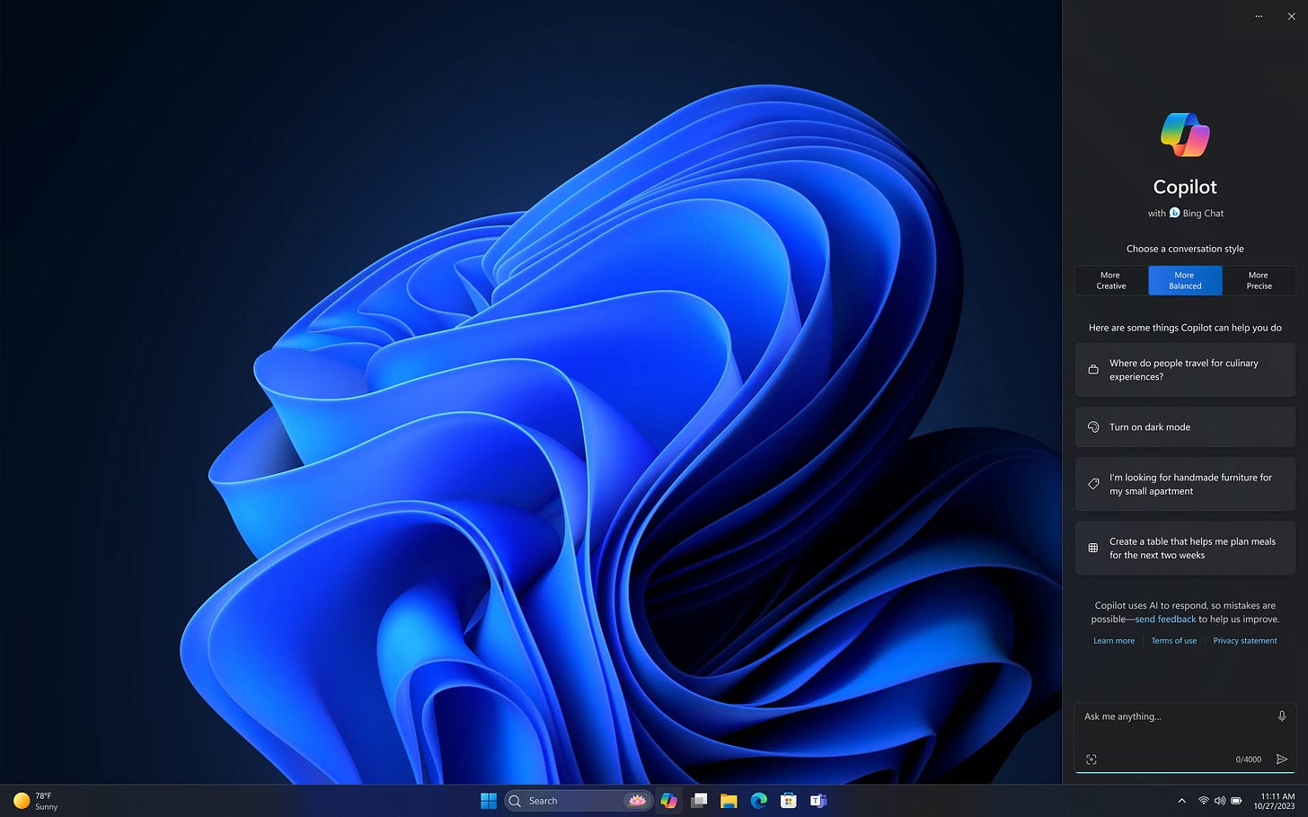 Puterea specială a utilizării Copilot în Windows constă în faptul că îți permite să modifici setările Windows, cum ar fi trecerea la modul întunecat, setarea nivelului de volum sau activarea modului „Nu deranjați”. De asemenea, poți să-i ceri să rezume textul pe care îl selectezi pe desktop-ul Windows. Capacitatea de a deschide unele aplicații era prezentă într-o versiune anterioară a barei laterale Copilot și se așteaptă să revină, dar momentan nu mai este o opțiune disponibilă. Noile PC-uri vor avea chiar o tastă Copilot pe tastatură pentru a lansa aplicatia de Inteligența Artificială.